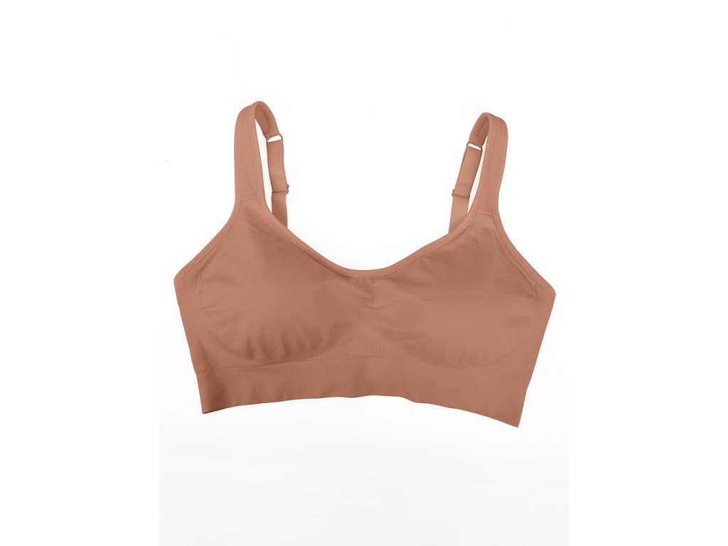 Bezešová tvarujúca podprsenka bez kostíc so širokými ramienkami, SVETLOHNEDÁ