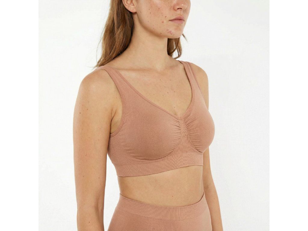 Jemne tvarujúca bezšvová podprsenka bez kostíc, TMAVÁ NUDE